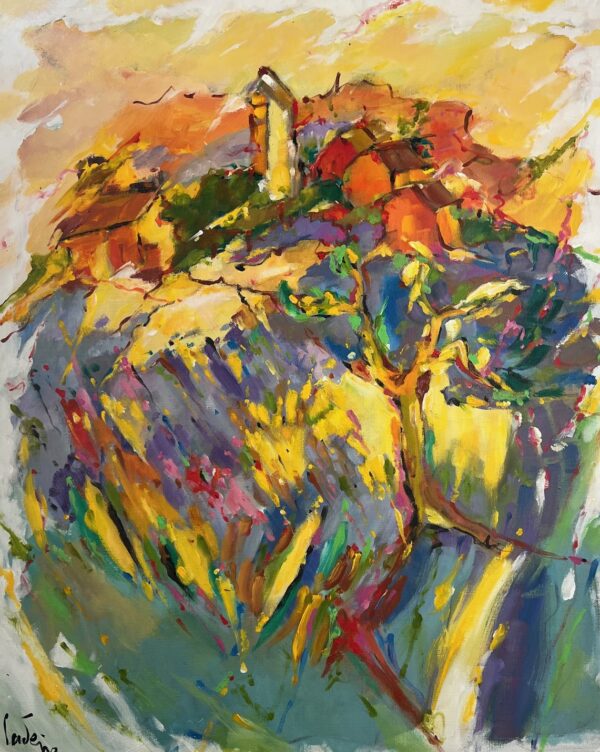 Titre : Olivier et champ de lavandes